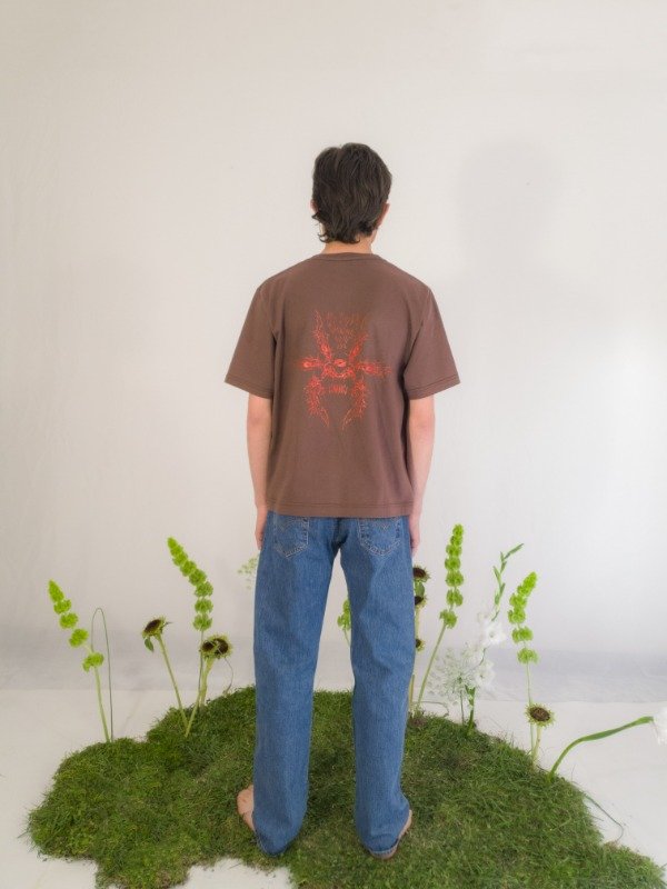 La estampa, hecha en serigrafía, es un diseño personal que habla de que siempre tenemos alguien que piensa en nosotros, alguien pendiente de nosotros, alguien brillando por nosotros. Todas mis estampas piensan, muestran otra cara de la vida.